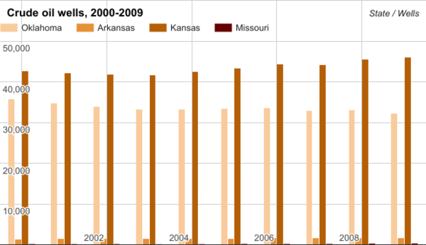Crude oil wells in Oklahoma and neighboring states (2000-2009)
