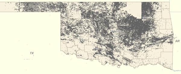 Oil and gas wells in Oklahoma as of May 2017 (click to enlarge)
