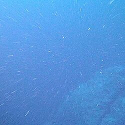 Organisms that live in the benthic boundary layer are known as being benthopelagic.[7] All organisms living predominantly in the benthic boundary layer must acquire their food from falling particles in the water column.[2] Bacterial growth and consumption of falling organic detritus is hindered by the hydrostatic pressure of water and increase in depth.[8] This allows for changeable and consumable matter to reach the ocean flood and be consumed by benthic organisms. The quality and quantity of nutrients reaching the sea floor play a major role in the development of benthic communities.[2] These organisms ultimately play a vital role in the remineralization of matter and aid in breaking down POM that may eventually become permanent sediment. Excluding hydrothermal vents, much of the deep sea benthos is allochthonous,[9][3] and the importance of bacteria for substrate conversion is paramount.