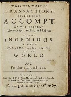 Philosophical Transactions of the Royal Society was established in 1665 by the Royal Society and is the oldest scientific journal in the English-speaking world.[1] Henry Oldenburg was appointed as the first (joint) secretary to the society and he was also the first editor of the society's journal. In 1887 the journal expanded to become two separate publications, one serving the physical sciences, Philosophical Transactions of the Royal Society A: Mathematical, Physical and Engineering Sciences, and the other focusing on the life sciences, Philosophical Transactions of the Royal Society B: Biological Sciences. Nowadays, both journals publish themed issues and discussion meeting issues, while individual research articles are published in the sister journal Proceedings of the Royal Society.