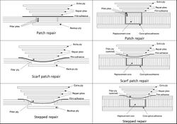 From Handwiki Composite repairs are performed on damaged laminate structures, fibre reinforced composites and other composite materials. The bonded composite repair reduces stresses in the damaged region and prevents cracks from opening or growing. Composite materials are used in a wide range of applications in aerospace, marine, Automotive industry , surface transport and sports equipment markets. Damage to composite components is not always visible to the naked eye and the extent of damage is best determined for structural components by suitable Non Destructive Test (NDT) methods.