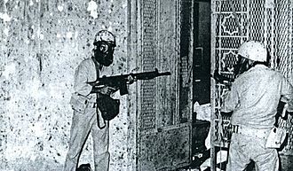 Eventually, Saudi Arabia started to fall into the old pitfall of Arab rulers. The people got more radical than the rulers. This became abundantly clear in 1979, when hundreds of armed Saudi civilians took over Mecca itself and managed to hold it for two weeks against a military onslaught from Saudi forces and allied advisors.[60] Hundreds died on both sides, and the bloody spectacle shocked the entire world. The militants had been motivated by their fury that the House of Saud had grown corrupt and apparently become too liberal.
