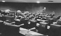 From Handwiki Legislative violence is violence between members of a legislature, often physically, inside the legislature and triggered by divisive issues and tight votes. Such clashes have occurred in many countries, and notable incidents still happen.