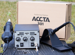 Stations with hot air guns are used in cases when just a soldering iron is not enough. Disassembling microchips requires a hot air gun. SMD components soldering with hot air is much more convenient. Hot air guns usually come with special nozzles for hot air stream regulation. Popular manufacturers: Hakko, Quick, Accta, Goot, etc.