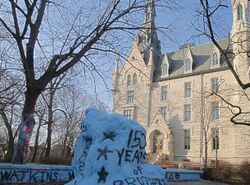 University Hall (1869), the second building constructed on campus, and the oldest building still standing