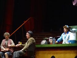 The audio version of the sketch excludes the Hungarian and historian, and instead has the Vikings reaching a dramatic crescendo. The waitress, resigned to these disruptions, mutters "Bloody Vikings!" In the 2014 version of the sketch performed in Monty Python Live (Mostly), one of the Vikings replies "Racist bastard!" before leading the group into an operatic chorus that includes a sampling of "Finland" from the team's Contractual Obligation Album.