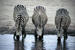 Caro's team found evidence that zebra stripes help to reduce biting by tabanid flies, but no reliable support for traditionally held hypotheses about the function of zebra stripes including camouflage, predator avoidance, heat management, or social interaction.[6] He evaluated 18 different proposed explanations for the stripes, devising and carrying out quantitative tests to compare them. The evolutionary ecologist Tim Birkhead, writing in the Times Higher Education, praised Caro's 2006 book Zebra Stripes as "an exemplary study", calling it "one long argument", a phrase used by Darwin of his On the Origin of Species, summarizing it as "in essence a 300-page scientific paper".[7] Karin Brulliard, writing in The Washington Post under the headline "To figure out why the zebra got its stripes, this researcher dressed up like one", portrays Caro in a zebra costume "not used in his fieldwork", but also in a tailor-made striped suit in the Tanzanian bush, as well as in pelts of zebra and the unstriped wildebeest. The newspaper reports Caro as "absolutely convinced" that he has found the right explanation.[8] Matthew Cobb, writing in New Scientist, recalls Rudyard Kipling's children's book, Just So Stories, in which the zebra got his stripes by standing half-in, half-out of the shadows "with the slippery-slidy shadows of the trees" on his body. Cobb calls Zebra Stripes a marvellous book and predicts it will encourage a generation to "tackle evolutionary biology's remaining enigmas, with or without the help of Kipling."[9] Michael Lemonick, writing in The New Yorker echoed the just-so-story theme.[10]