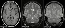 Examples of T1-weighted, T2-weighted and PD-weighted MRI scans