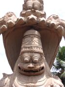 The typical icon of Jagannath is unlike other deities found in Hinduism who are predominantly anthropomorphic. However, aniconic forms of Hindu deities are not uncommon. For example, Shiva is often represented in the form of a Shiva linga. In most Jagannath temples in the eastern states of India, and all his major temples such as the Puri, Odisha, Jagannath is included with his brother Balabhadra and sister Subhadra. Apart from the principal companion deities, Jagannath icon shows a Sudarshana Chakra and sometimes under the umbrella cover of multiheaded Sesha Naga, both linking him to Vishnu. He was one of the introduction to Hinduism to early European explorers and merchants who sailed into Calcutta and ports of the Bay of Bengal. The Italian Odoric of Pordenone who was a Franciscan friar, visited his temple and procession in 1321 CE, and described him in the language of the Church. William Burton, visited his temple at Puri in 1633, spelled him as Jagarnat and described him to be "in a shape like a serpent, with seven hoods".[36]