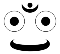 The icon of Jagannath in his temples is a brightly painted, rough-hewn log of neem wood.[33] The image consists of a square flat head, a pillar that represents his face merging with the chest. The icon lacks a neck, ears, and limbs, is identified by a large circular face symbolizing someone who is anadi (without beginning) and ananta (without end).[34] Within this face are two big symmetric circular eyes with no eyelids, one eye symbolizing the sun and the other the moon, features traceable in 17th-century paintings. He is shown with an Urdhva Pundra, the Vaishnava U-shaped mark on his forehead. His dark color and other facial features are an abstraction of the cosmic form of the Hindu god Krishna, states Starza.[35] In some contemporary Jagannath temples, two stumps pointing forward in hug-giving position represent his hands. In some exceptional medieval and modern era paintings in museums outside India, such as in Berlin states Starza, Jagannath is shown "fully anthropomorphised" but with the traditional abstract mask face.[35]