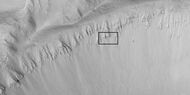 Crater wall with columnar jointing in the location of the box Columnar joints are easily seen in the enlarged image that follows. Picture taken with HiRISE.