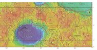 MOLA map showing boundaries of Tyrrhena Terra and other nearby regions