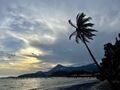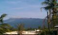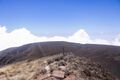 Mount Cameroon is one of Africa's largest volcanoes, rising to 4,040 metres (13,255 ft) above the coast of west Cameroon.[6] It rises from the coast through tropical rainforest to a bare summit, which is cold, windy, and occasionally dusted with snow. The massive steep-sided volcano of dominantly basaltic-to-trachybasaltic composition forms a volcanic horst constructed above a basement of Precambrian metamorphic rocks covered with Cretaceous to Quaternary sediments. More than 100 small cinder cones, often fissure-controlled parallel to the long axis of the massive 1,400-cubic-kilometre (336 cu mi) volcano, occur on the flanks and surrounding lowlands. A large satellitic peak, Etinde (also known as Little Mount Cameroon), is located on the southern flank near the coast.