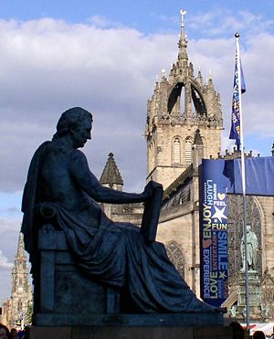 Statue of David Hume. "Man is a reasonable being; and as such, receives from science his proper food and nourishment: But so narrow are the bounds of human understanding, that little satisfaction can be hoped for in this particular..."Hume recognised clearly the difficulties in gaining a general understanding merely by accumulating observations.
