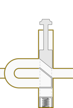 A trumpet becomes a closed tube when the player presses it to the lips; therefore, the instrument only naturally produces every other overtone of the harmonic series. The shape of the bell makes the missing overtones audible.[18] Most notes in the series are slightly out of tune and modern trumpets have slide mechanisms for the first and third valves with which the player can compensate by throwing (extending) or retracting one or both slides, using the left thumb and ring finger for the first and third valve slides respectively.