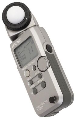 In most modern cameras, the amount of light entering the camera is measured using a built-in light meter or exposure meter.[lower-alpha 3] Taken through the lens (called TTL metering), these readings are taken using a panel of light-sensitive semiconductors.[12] They are used to calculate optimal exposure settings. These settings are typically determined automatically as the reading is used by the camera's microprocessor. The reading from the light meter is incorporated with aperture settings, exposure times, and film or sensor sensitivity to calculate the optimal exposure. [lower-alpha 4]
