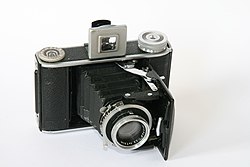 Medium-format cameras have a film size between the large-format cameras and smaller 35 mm cameras.[29] Typically these systems use 120 or 220 roll film.[30] The most common image sizes are 6×4.5 cm, 6×6 cm and 6×7 cm; the older 6×9 cm is rarely used. The designs of this kind of camera show greater variation than their larger brethren, ranging from monorail systems through the classic Hasselblad model with separate backs, to smaller rangefinder cameras. There are even compact amateur cameras available in this format.