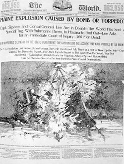 War came because public opinion was sickened by the bloodshed, and because leaders like McKinley realized that Spain had lost control of Cuba.[27] These factors weighed more on the president's mind than the melodramas in the New York Journal.[28] Nick Kapur says that McKinley's actions were based more on his values of arbitrationism, pacifism, humanitarianism, and manly self-restraint, than on external pressures.[29]