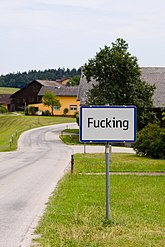 As for the second case, it is to be expected that place names and words will resemble each other by chance. If one takes any language in the world and compares its thousands of words to the thousands of existing place names, many will happen to be similar. For there to be no coincidences is simply not possible.[4] Similarly, if you take a particular place name, it's a good bet that it will coincidentally mean something in various languages. Good examples of this are the village of Fucking, Austria, and the cities of Pula,[24] Croatia (pula meaning "the dick" in Romanian), and Batman, Turkey.