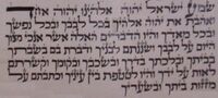 The passage following the Shema and V'ahavta relates to the issue of reward and punishment. It contains the promise of reward for serving God with all one's heart, soul, and might (Deut 11:13) and for the fulfillment of the laws. It also contains punishment for transgression.[7] It also contains a repetition of the contents of the first portion - but this time spoken to the second person plural, whereas the first portion is directed to the individual, this time it is directed to the whole community.