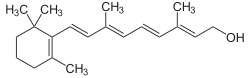 Vitamin A deficiencies can occur in developing nations and can lead to severe visual problems, among other conditions; with 200 million children affected by this deficiency (causing half a million deaths and another half a million cases of permanent blindness), this may be the most widespread deficiency.[17]Beta-carotene (β-carotene), a common precursor to Vitamin A used as a supplement, has been studied as an "antioxidant" and cancer preventative. However, large, well-conducted studies have shown an increase in lung cancer in people taking these supplements. Smokers and others at increased risk for lung cancer saw their risk increase even more.[18] Another recent study showed an increase in aggressive prostate cancers in men taking beta-carotene.[19]
