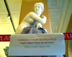 The conservation and restoration of cultural heritage focuses on protection and care of tangible cultural heritage, including artworks, architecture, archaeology, and museum collections.[1] Conservation activities include preventive conservation, examination, documentation, research, treatment, and education.[2] This field is closely allied with conservation science, curators and registrars.