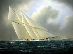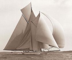 She was owned by Alexander Cochran a successful businessman and member of the New York Yacht Club. Her skipper was Charlie Barr, notorious for his wins in the America's Cup Races. In her first season in German waters, she smashed Kaiser Wilhelm's fleet displaying a faster speed to windward than any other schooner.[3] This was due to her ability to carry more canvas than her competitors although in high winds this extra load made her nearly unmanageable.