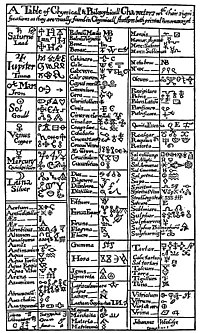 Alchemical symbols, originally devised as part of alchemy, were used to denote some elements and some compounds until the 18th century. Although notation like this was mostly standardized, style and symbol varied between alchemists, so this page mainly lists the most common ones.