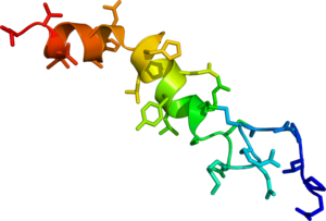 Orexin, otherwise known as hypocretin, is a neuropeptide that acts within the brain to regulate appetite and wakefulness as well as a number of other cognitive and physiological processes.[13][24][25] While there are billions of cells in the human brain, only 10,000–20,000 neurons secrete orexin peptides;[4] all of these neurons project out of the lateral hypothalamus.[13] Loss of these orexin-producing neurons causes narcolepsy and most individuals with narcolepsy have a reduced number of these neurons in their brains.[13][14][17]