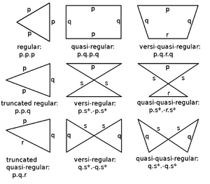 - Quasi-quasi-regular (trapezoidal vertex figures): p*.q.p*.-r q.r|p or p.q*.-p.q* p q r|