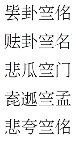 | Sawndip | 𨱥 | 䦟 | 𡘫 | 仦 | 𡚻 |