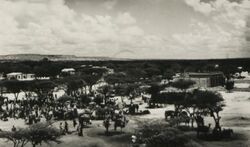 The town evolved in the latter half of the 1800s as a Qadiriyya settlement established by Sheikh Madar, near a water-stop used by nomadic stock-herders on the way to the town of Harar. It proposes a possible derivation of the name "Hargeisa" from the sobriquet Harar as-sagir, meaning "Harar the little"[9][10] According to historian Norman Bennett, Madar named the settlement Hargeisa or Little Harar since he aspired for it to emulate the city of Harar as a center for Islamic teachings.[11] Another etymological root for Hargeisa's name derives from the towns connection to the skins trade. Hargeisa has been a watering and trading stop between the coast and the interior, and chief amongst the goods traded were the hide skins procured from the interior to be processed in the settlement. In this etymological version, 'Hargeisa' is derived from hargageys, which means "place to sell hides and skins" in Somali.[12][13][14]