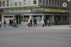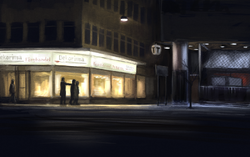 After the screening, the two couples (Olof & Lisbeth, and their son Mårten, with girlfriend)[26] stayed outside the theatre for a while but separated at about 23:15. Olof and Lisbeth Palme headed south on the west side of Sveavägen, towards the northern entrance of the Hötorget metro station. When they reached the Adolf Fredrik Church, they crossed Sveavägen and continued on the street's east side. They stopped a moment to look at something in a shop window, then continued past the Dekorima (later Kreatima, now Urban Deli) shop which was then located on the corner of Sveavägen and Tunnelgatan.
