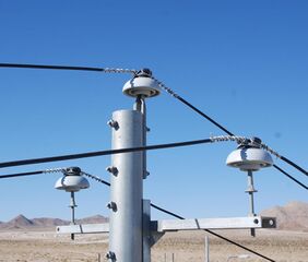 These insulators also have to be equipped with overvoltage protection equipment. For the dimensions of the guy insulation, static charges on guys have to be considered. For high masts, these can be much higher than the voltage caused by the transmitter, requiring guys divided by insulators in multiple sections on the highest masts. In this case, guys which are grounded at the anchor basements via a coil - or if possible, directly - are the better choice.