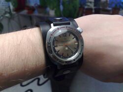 The company was appointed an official supplier of watches for the Ministry of Defence of the Soviet Union in 1965. This year also marks the creation of the well known Komandirskie ("Commander's") watch. The experience gained through development of the army watch led to the Amphibia, a stainless-steel diving watch able to withstand a 200-metre depth (20atm). By 1980, Vostok Watch Makers was producing 4.5 million timepieces per year.[1]