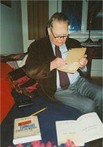 During Miłosz's time at Berkeley, the campus became a hotbed of student protest, notably as the home of the Free Speech Movement, which has been credited with helping to "define a generation of student activism" across the United States.[71] Miłosz's relationship to student protesters was sometimes antagonistic: he called them "spoiled children of the bourgeoisie"[72] and their political zeal naïve. At one campus event in 1970, he mocked protesters who claimed to be demonstrating for peace and love: "Talk to me about love when they come into your cell one morning, line you all up, and say 'You and you, step forward—it’s your time to die—unless any of your friends loves you so much he wants to take your place!'"[73] Comments like these were in keeping with his stance toward American counterculture of the 1960s in general. For example, in 1968, when Miłosz was listed as a signatory of an open letter of protest written by poet and counterculture figure Allen Ginsberg and published in The New York Review of Books, Miłosz responded by calling the letter "dangerous nonsense" and insisting that he had not signed it.[74]