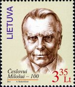 Miłosz has also been honored posthumously. The Polish Parliament declared 2011, the centennial of his birth, the "Year of Miłosz".[98] It was marked by conferences and tributes throughout Poland, as well as in New York City,[109] at Yale University,[110] and at the Dublin Writers Festival,[111] among many other locations. The same year, he was featured on a Lithuanian postage stamp. Streets are named for him near Paris,[112] Vilnius,[113] and in the Polish cities of Kraków,[114] Poznań,[115] Gdańsk,[116] Białystok,[117] and Wrocław.[118] In Gdańsk there is a Czesław Miłosz Square.[119] In 2013, a primary school in Vilnius was named for Miłosz,[120] joining schools in Mierzecice, Poland, and Schaumburg, Illinois, that bear his name.[121][122]