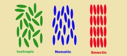 Visual glass goes through a gradual progression while altering colors stages in different heat zones.[2] In order for specific light wavelengths to be reflected off of a temperature sensitive glass, it has to go through one of three main heat phases. In accelerated temperature zones, the crystals respond in the nematic phase. Smectic is in the range of temperatures between that of its neighbors nematic and chiral. These phases are impacted by the pitch which in return reflects specific wavelengths.