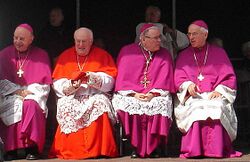 A prelate (/ˈprɛlət/)[1] is a high-ranking member of the Christian clergy who is an ordinary or who ranks in precedence with ordinaries. The word derives from the Latin praelatus, the past participle of praeferre, which means 'carry before', 'be set above or over' or 'prefer'; hence, a prelate is one set over others.