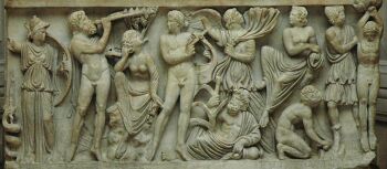 This tale was a warning against committing the sin of "hubris", or overweening pride, in that Marsyas thought he might win against a god. Strange and brutal as it is, this myth reflects a great many cultural tensions that the Greeks expressed in the opposition they often drew between the lyre and aulos: freedom vs. servility and tyranny, leisured amateurs vs. professionals, moderation (sophrosyne) vs. excess, etc. Some of this is a result of 19th century AD "classical interpretation", i.e. Apollo versus Dionysus, or "Reason" (represented by the kithara) opposed to "Madness" (represented by the aulos). In the temple to Apollo at Delphi, there was also a shrine to Dionysus, and his Maenads are shown on drinking cups playing the aulos, but Dionysus is sometimes shown holding a kithara or lyre. So a modern interpretation can be a little more complicated than just simple duality.