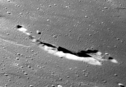 Aryabhata, named after Indian astronomer Aryabhata,[1] is the remnant of a lunar impact crater located in the eastern Mare Tranquillitatis. The crater has been almost submerged by lava-flow, and now only an arc-shaped ridge formed from the eastern half of the rim remains above the lunar mare. This crater was previously identified as Maskelyne E before being named by the IAU in 1979. Maskelyne itself is to the southwest.