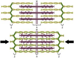 The sarcomere is attached to other organelles such as the mitochondria by intermediate filaments in the cytoskeleton. The costamere attaches the sarcomere to the sarcolemma.[5]