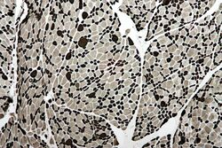 There are numerous methods employed for fiber-typing, and confusion between the methods is common among non-experts. Two commonly confused methods are histochemical staining for myosin ATPase activity and immunohistochemical staining for myosin heavy chain (MHC) type. Myosin ATPase activity is commonly—and correctly—referred to as simply "fiber type", and results from the direct assaying of ATPase activity under various conditions (e.g. pH).[34] Myosin heavy chain staining is most accurately referred to as "MHC fiber type", e.g. "MHC IIa fibers", and results from determination of different MHC isoforms.[34] These methods are closely related physiologically, as the MHC type is the primary determinant of ATPase activity. However, neither of these typing methods is directly metabolic in nature; they do not directly address oxidative or glycolytic capacity of the fiber.