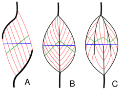 Muscle architecture refers to the arrangement of muscle fibers relative to the axis of force generation, which runs from a muscle's origin to its insertion. The usual arrangements are types of parallel, and types of pennate muscle. In parallel muscles the fascicles run parallel to the axis of force generation, but the fascicles can vary in their relationship to one another, and to their tendons.[28] These variations are seen in fusiform, strap, and convergent muscles.[3] A convergent muscle has a triangular or fan-shape as the fibers converge at its insertion and are fanned out broadly at the origin.[28] A less common example of a parallel muscle is a circular muscle such as the orbicularis oculi, in which the fibers are longitudinally arranged, but create a circle from origin to insertion.[29] These different architectures, can cause variations in the tension that a muscle can create between its tendons.