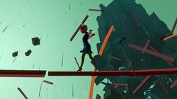 The idea of a dancing main character was not added from the beginning of development. Rather, after one and a half years in development, the developers were disappointed with how similar to a typical game character her movements looked, and were inspired by a video of a modern jazz dance to change their movements to those of a dancer.[1] Motion capture was used on the dancer Maria Udod, who was chosen due to her experience both in ballet and contemporary dance, in order to record her movements for use by the protagonist.[1] Her choreographer was Michał Adam Góral.[1] Every animation of the character was changed to a dance move.[1]