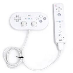 The Classic Controller is an extension for the Wii Remote, released alongside the Wii in November 2006. Its form factor is similar to classic gamepads such as that for the Super Nintendo Entertainment System, with a d-pad, four face buttons, Start and Select buttons alongside the Wii connection button, and two shoulder buttons. Players can use it with older games from the Virtual Console in addition to games designed for the Wii.[102] In 2009, Nintendo released the Wii Classic Controller Pro, which was modelled after the GameCube's form factor and included two analog sticks.[103]