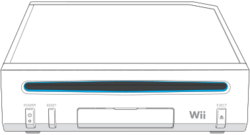 The Wii reads games from an optical media drive located in the front of the device. The drive is capable of reading Nintendo's proprietary discs, the 12 cm Wii discs and 8 cm GameCube discs, but cannot read other common optical media—namely, DVD-Video, DVD-Audio or compact discs. Although Nintendo had planned on incorporating this feature into later revisions of the Wii, the demand for the console meant a delay in their schedule, until the feature lost interest.[79][80][81] The slot of the optical drive is backed by LED lights which show the system's status. For example, it will pulse blue when the system is communicating with the WiiConnect24 service or when reading a disc after being inserted.[82][83]