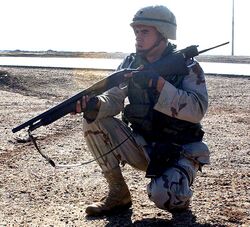 Since the end of World War II, the shotgun has remained a specialty weapon for modern armies. It has been deployed for specialized tasks where its strengths were put to particularly good use. It was used to defend machine gun emplacements during the Korean War, American and French jungle patrols used shotguns during the Vietnam War, and shotguns saw extensive use as door breaching and close quarter weapons in the early stages of the Iraq War, and saw limited use in tank crews.[37] Many modern navies make extensive use of shotguns by personnel engaged in boarding hostile ships, as any shots fired will almost certainly be over a short range. Nonetheless, shotguns are far less common in military use than rifles, carbines, submachineguns, or pistols.