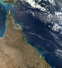 In the case of formation from volcanoes, when a volcano erupts magma near water, it may form a peninsula (e.g., the Alaskan Peninsula).[15] Peninsulas formed from volcanoes are especially common when the volcano erupts near shallow water.[19] Marine sediment may form peninsulas by the creation of limestone.[20] A rift peninsula may form as a result of a divergent boundary in plate tectonics (e.g. the Arabian Peninsula),[21][22] while a convergent boundary may also form peninsulas (e.g. Gibraltar or the Indian subcontinent).[23] Peninsulas can also form due to sedimentation in rivers. When a river carrying sediment flows into an ocean, the sediment is deposited, forming a delta peninsula.[24]