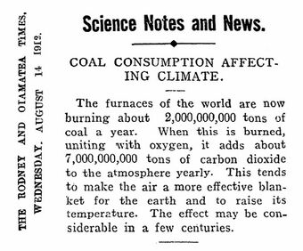 Callendar, G. S. (1938). "The artificial production of carbon dioxide and its influence on temperature". Quarterly Journal of the Royal Meteorological Society64 (275): 223–240. doi:10.1002/qj.49706427503. Bibcode: 1938QJRMS..64..223C.